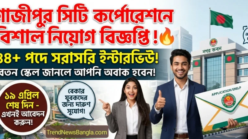 আপনি কি সরকারি চাকরি খুঁজছেন? বিশেষ করে যারা নিজ এলাকায় থেকে সিটি কর্পোরেশনে ক্যারিয়ার গড়তে চান, তাদের জন্য এক চমৎকার সুযোগ নিয়ে এসেছে গাজীপুর সিটি কর্পোরেশন (GCC)।