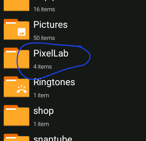 আপনার ফোনের ইন্টারনেল স্টোরেজ এ root folder এ pixellab নামে একটা ফোল্ডার পাবেন, যদি ফোল্ডার না থাকে তাহলে ক্রিয়েট করে নিন।