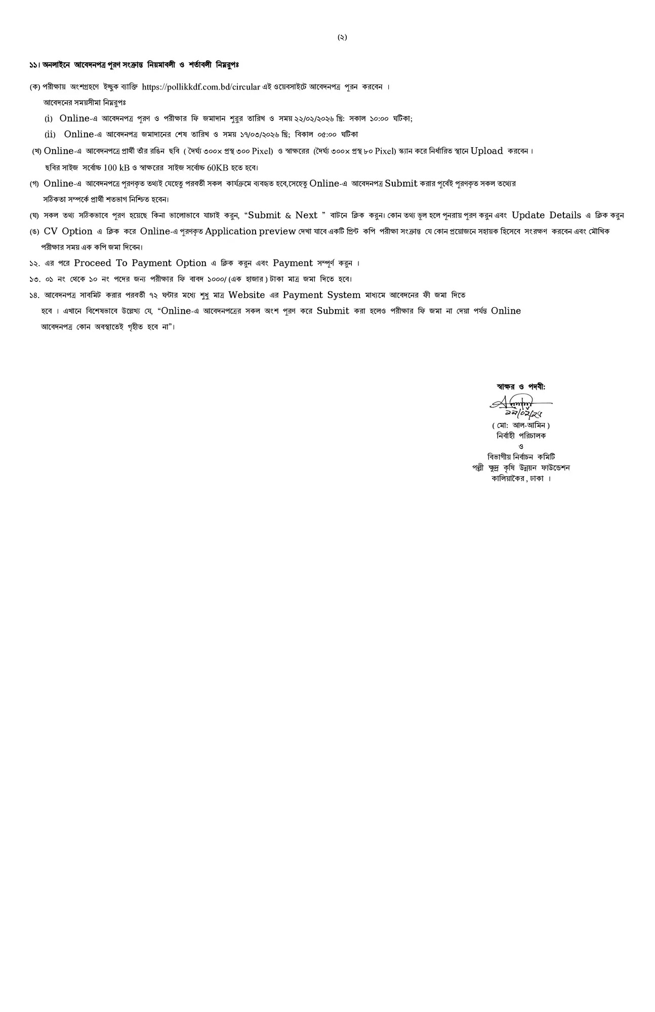 এই নিয়োগ বিজ্ঞপ্তি ২০২৬ একদম বড় সুযোগ — বিশেষ করে যারা স্থায়ী চাকরি খুঁজছেন এবং কৃষি/গ্রামীণ উন্নয়ন খাতে কাজ করতে চান তাদের জন্য এটি একটি ভালো পদক্ষেপ। উপরের তথ্যগুলো পড়ে যদি আপনি অযোগ্য মনে না হন, তাহলে সময় থাকতেই আবেদনটি শেষ করে ফেলুন।