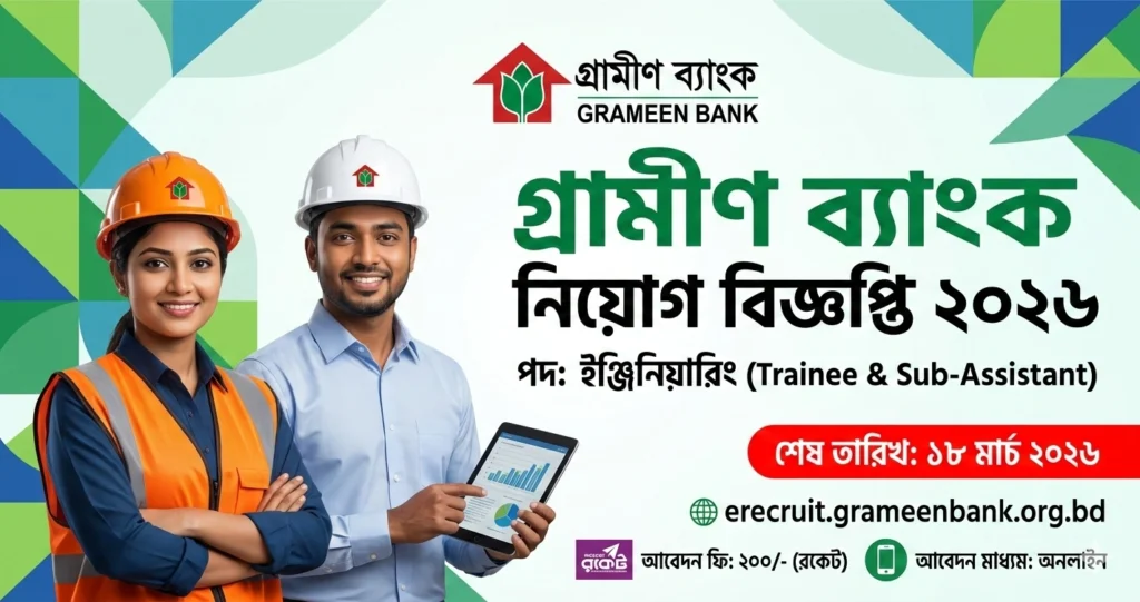 বাংলাদেশের ব্যাংকিং সেক্টরে ক্যারিয়ার গড়া অনেকেরই স্বপ্ন। আর সেই ব্যাংকটি যদি হয় নোবেলজয়ী প্রতিষ্ঠান গ্রামীণ ব্যাংক, তবে তো কথাই নেই। আপনি কি গ্রামীণ ব্যাংকে চাকরি করতে আগ্রহী? তবে আপনার জন্য রয়েছে একটি দারুণ সুখবর! সম্প্রতি গ্রামীণ ব্যাংক তাদের প্রতিষ্ঠানে জনবল নিয়োগের জন্য “গ্রামীণ ব্যাংক নিয়োগ বিজ্ঞপ্তি ২০২৬” প্রকাশ করেছে।