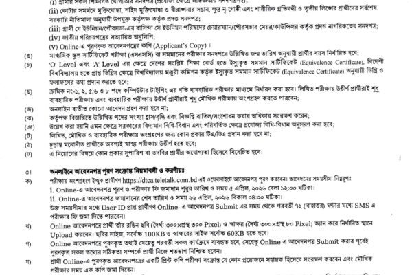 তথ্যসূত্র: DTCA অফিসিয়াল ওয়েবসাইট ও নিয়োগ বিজ্ঞপ্তি।