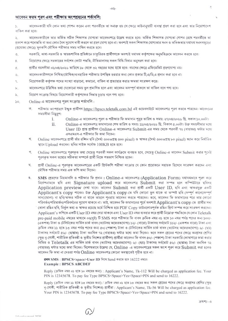 - অনলাইন আবেদন শেষ: ১৯ এপ্রিল ২০২৬, সন্ধ্যা ০৬:০০ টা পর্যন্ত।
