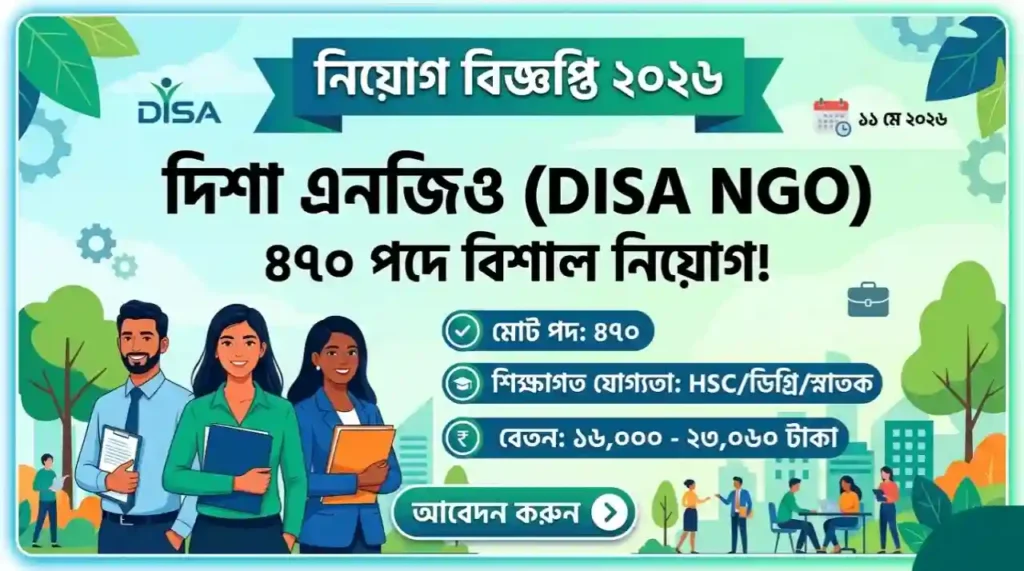 দিশা এনজিও (DISA NGO) নিয়োগ বিজ্ঞপ্তি ২০২৬ – ৮টি ক্যাটাগরিতে ৪৭০ পদে বিশাল নিয়োগ, আবেদন করুন আজই!