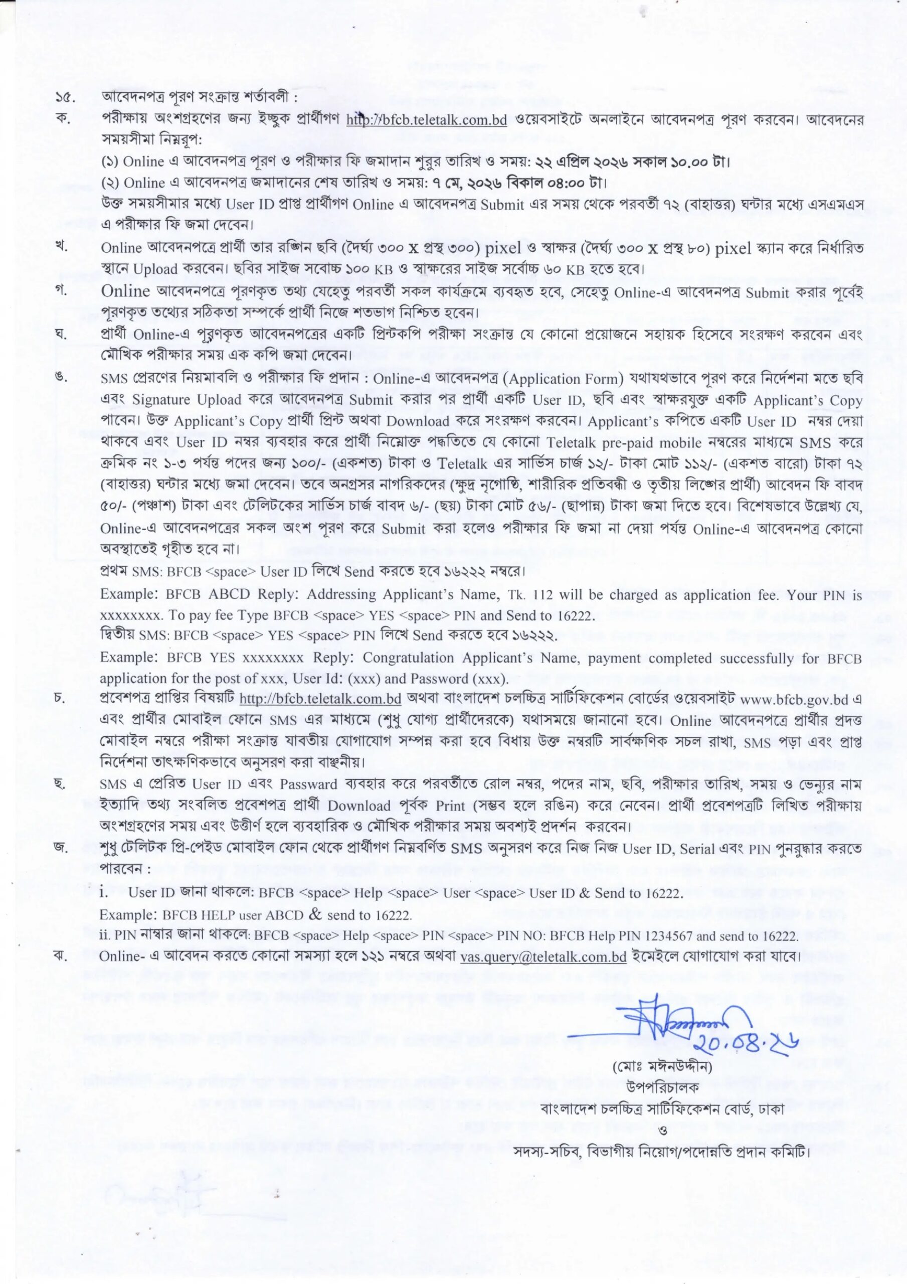 1. Online Registration: Visit bfcb.teletalk.com.bd between April 22 and May 07, 2026.